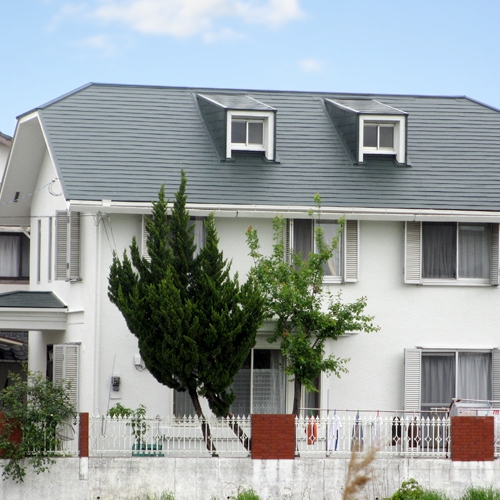 日陰になっている部分や日のあたりにくい屋根はコケやカビがひどいので念入りに洗浄を行います。天気も良い日に撮影したら、モデルハウスのチラシのような写真になりました。でも、本当に綺麗な住宅に仕上がって満足です。