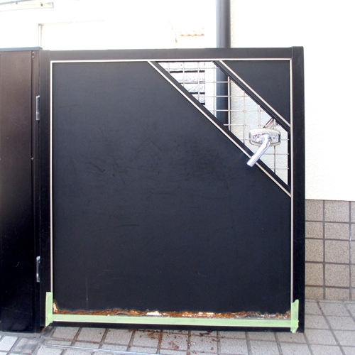 玄関前のシンボルの塗りなおしです。敷地の区分の外壁や、プランターなどのコンクリート部分などは